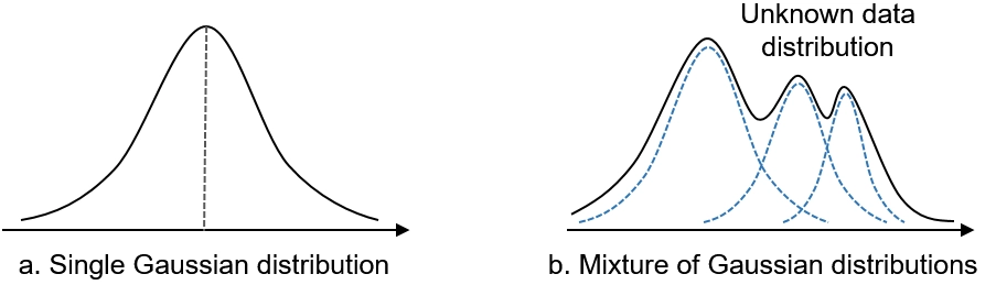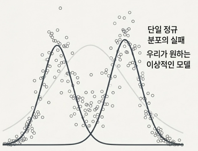 현실의 데이터는 여러 그룹이 섞여 있는 경우가 빈번하다(예: 레이블이 없는 군집화 문제). 각 그룹의 데이터가 별개의 분포로부터 나온다고 할 때, 단일 가우시안 분포로는 다봉형(multimodal) 데이터의 복잡성을 근사(approximate)할 수 없다.