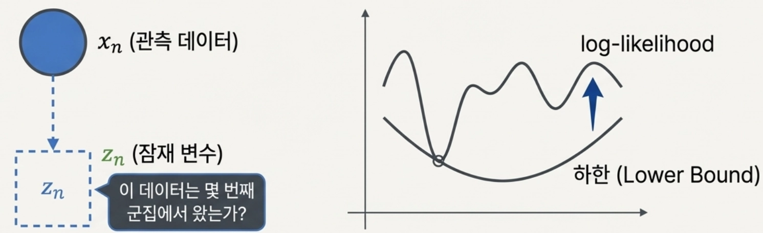 잠재 변수와 로그-우도 함수의 하한선 최대화