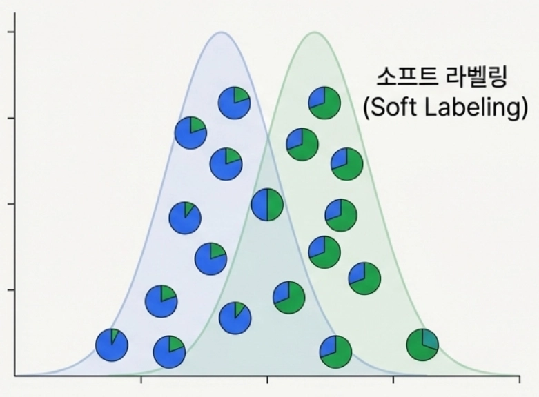 E-Step의 결과로서 각각의 데이터 은 “그룹 1일 확률 80%, 그룹 2일 확률 15%, 그룹 3일 확률 5%”와 같은 형태로 소프트 레이블(soft label)을 부여받게 된다.