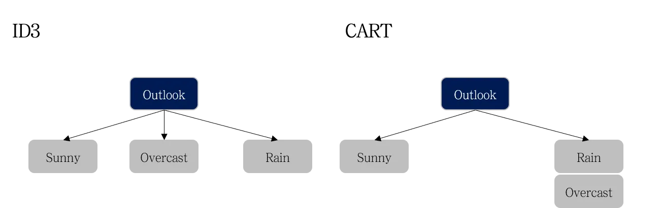 Binary Tree : 조건의 결과가 True/False로 나뉘며, 두 개의 자식 노드를 생성 (if 조건문과 비슷)