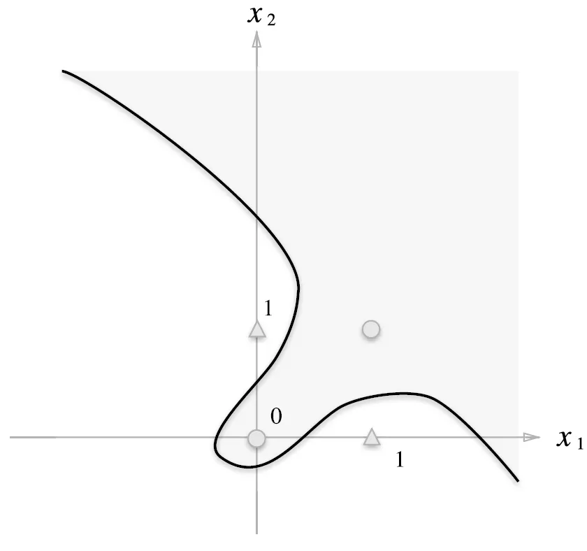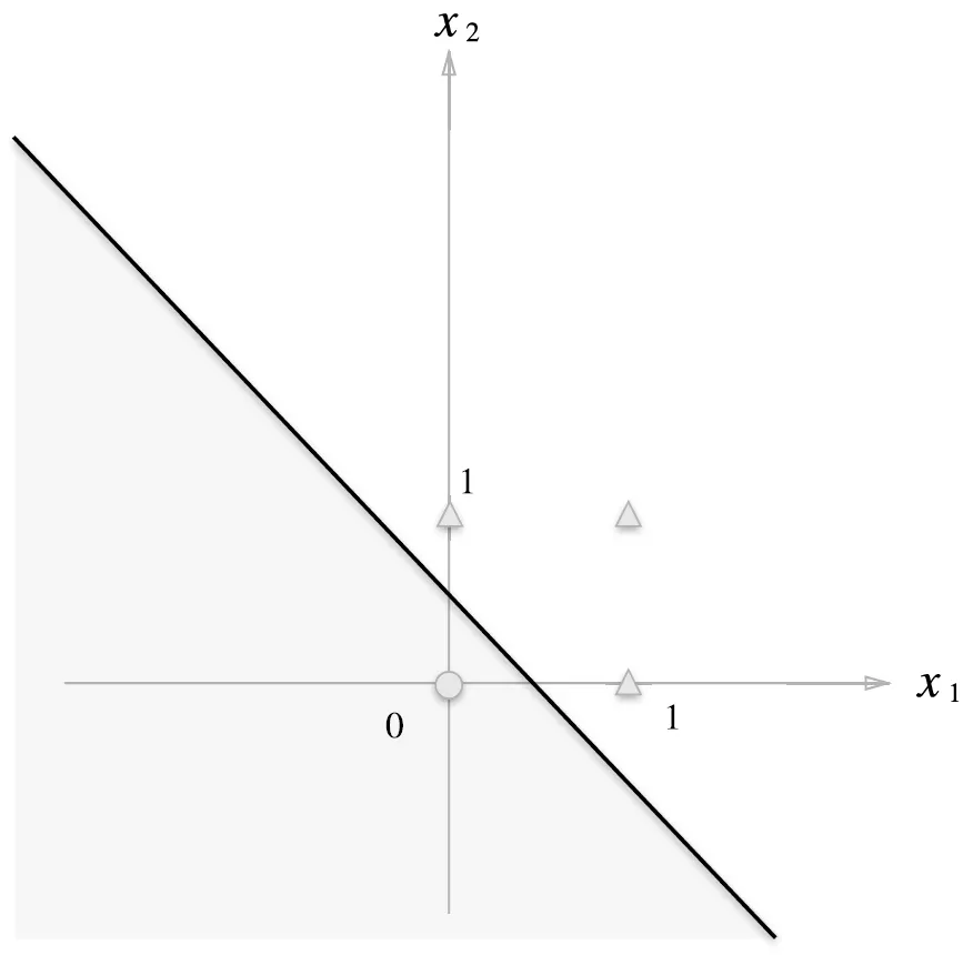 OR게이트 영역 구분(회색 영역=0) → 퍼셉트론 O