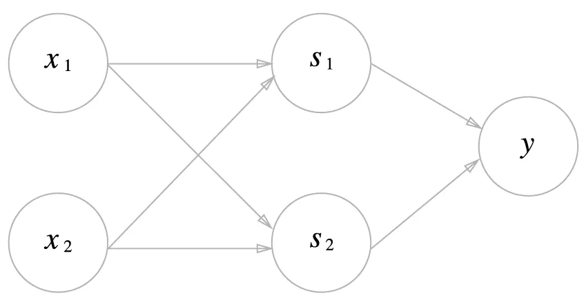 첫 번째 층의 두 뉴런이 입력 신호를 받아 출력한 값을 두 번째 층으로 보내면, 두 번째 층은 받은 신호를 입력으로 받아 최종적으로 를 출력한다.