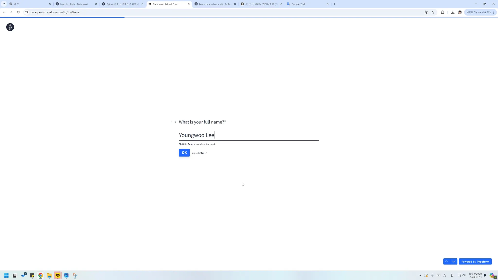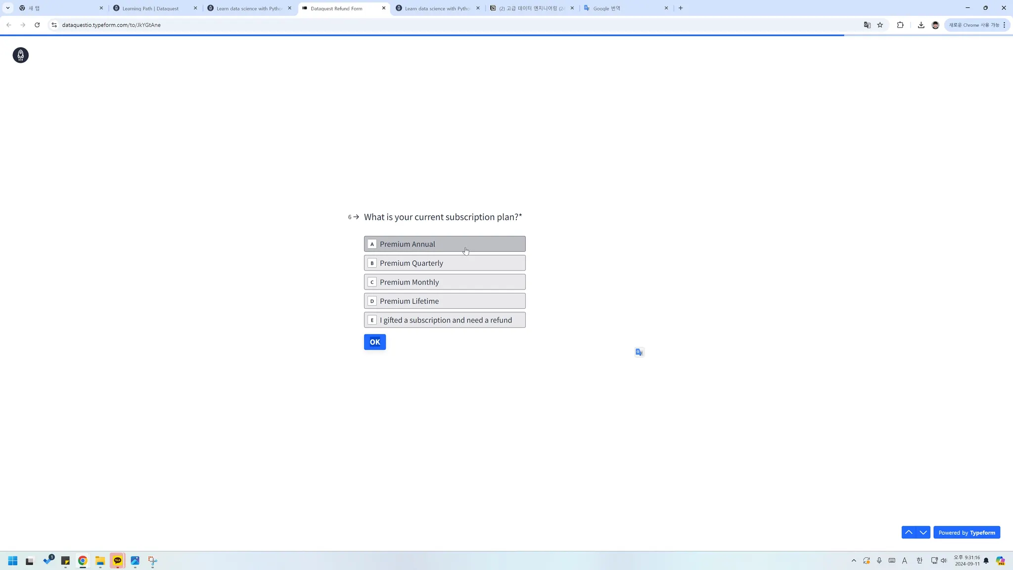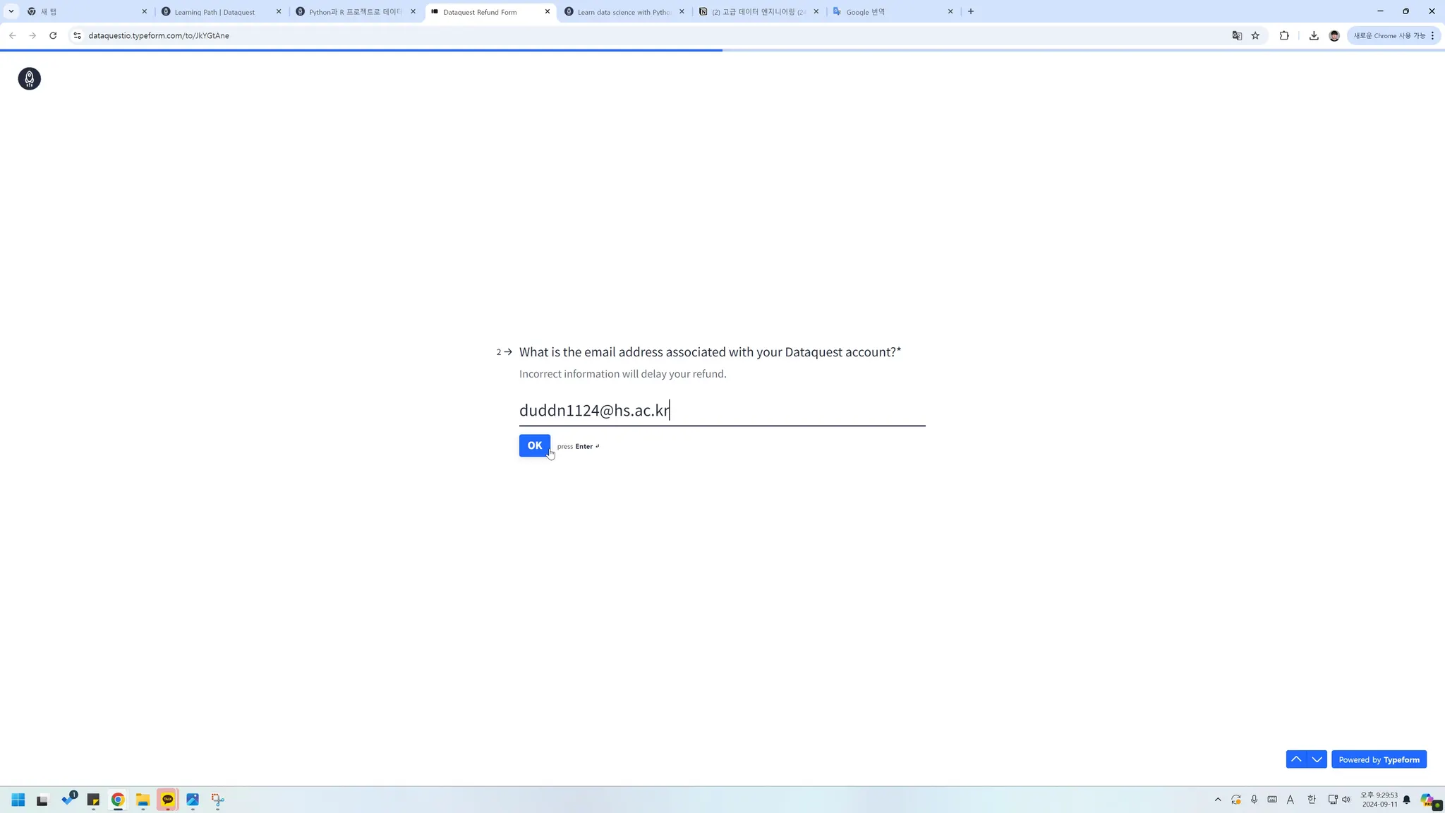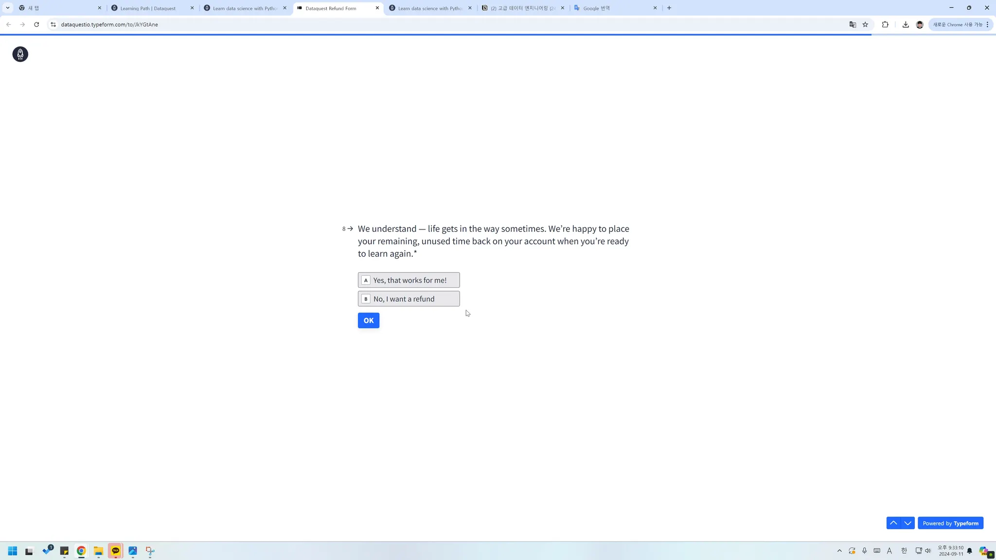 Requesting a refund 메뉴에서 Complete this refund request form 클릭