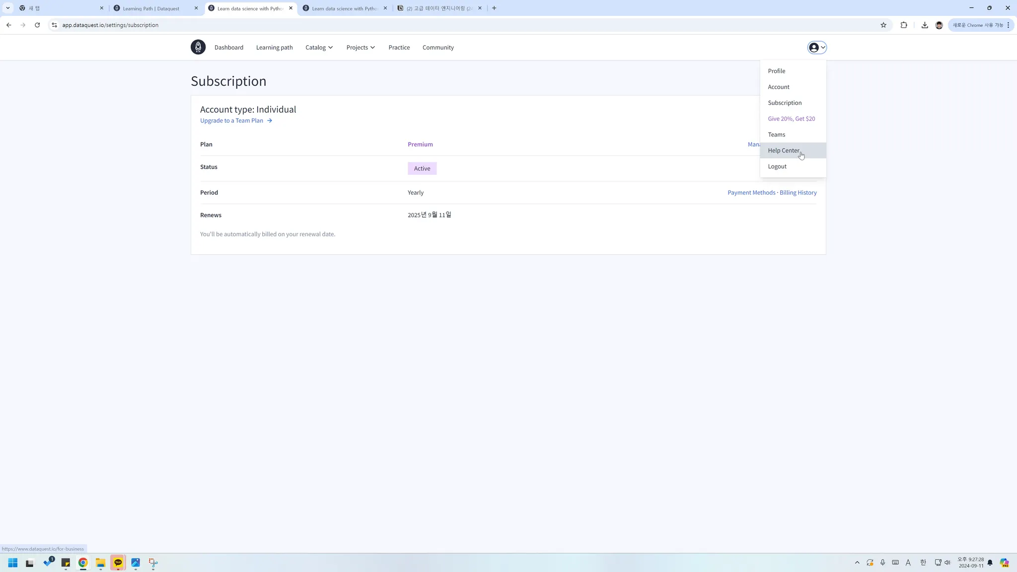 프로필 사진 클릭 ⇒ Help Center 클릭