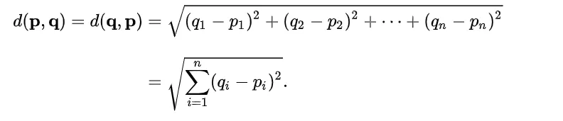 거리 측정 방법으로는 주로 유클리드 거리(Euclidean Distance), 맨해튼 거리(Manhattan Distance), 코사인 유사도(Cosine Similarity) 등이 사용.