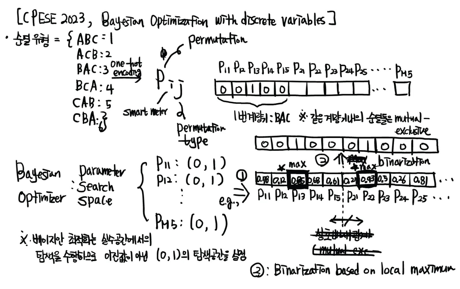 아이디어: 국소 최대값 기반 이진화를 적용한 이산 공간에 대한 베이지안 최적화