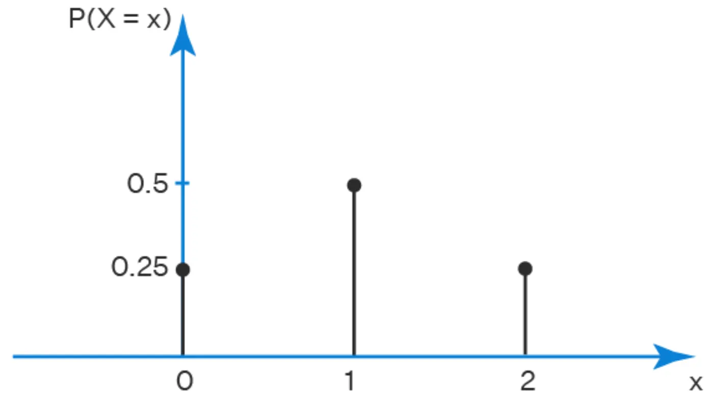 위의 예시를 확률변수 와 같이 나타내며, 각각의 사건에 대한 확률은 이다.