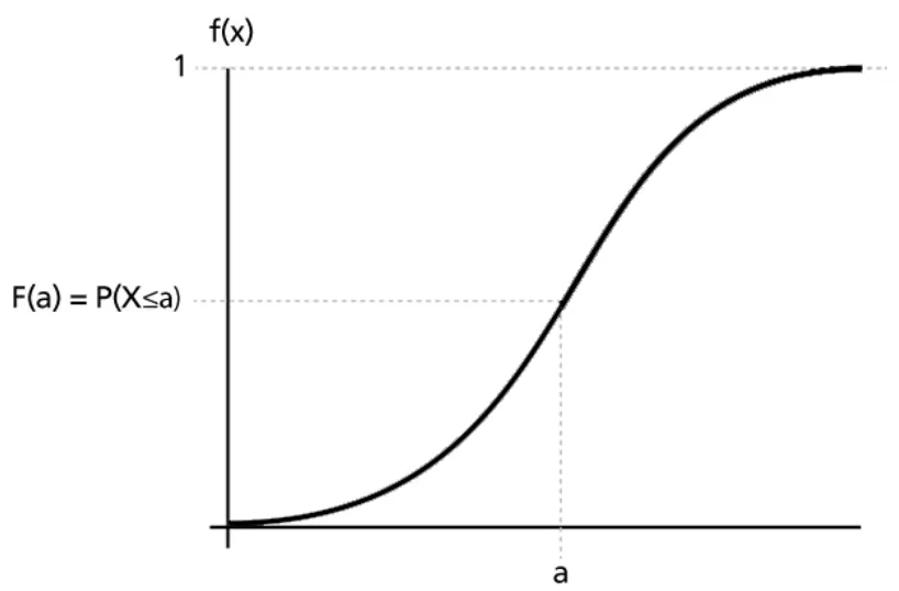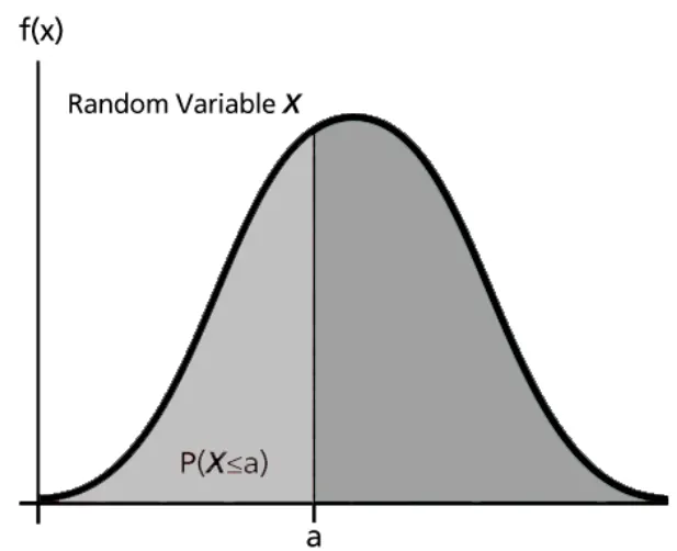 연속확률변수 X가 a 이하일 확률을 표현하는 누적분포함수 (출처: Reliawiki)