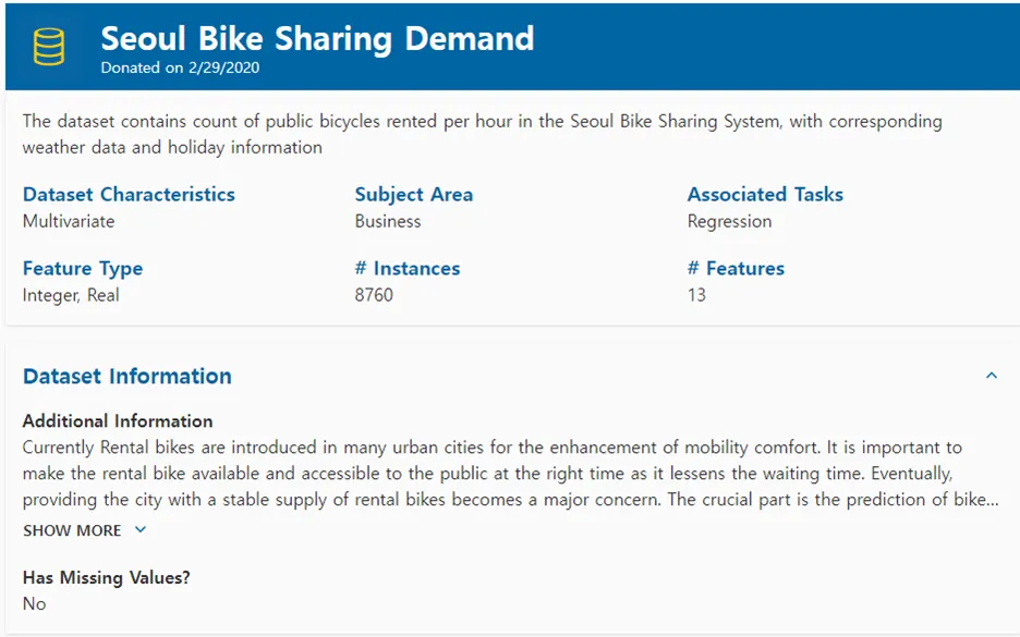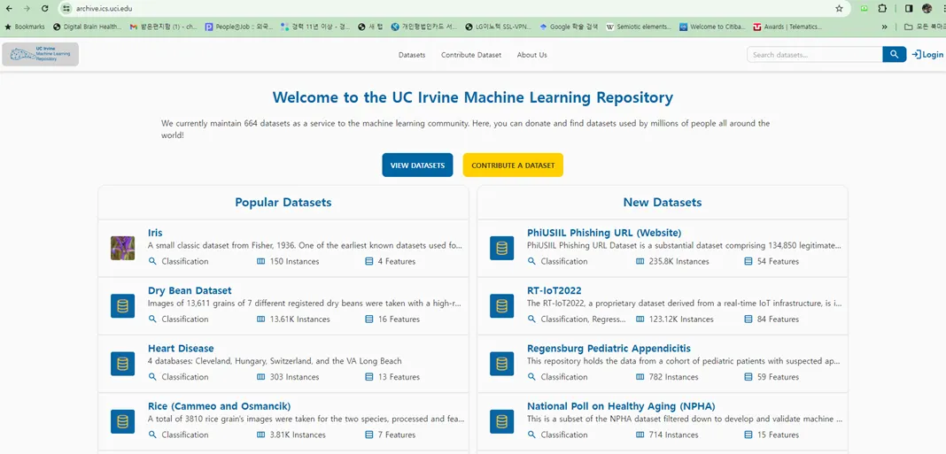 학습과 실험 목적에 맞는 데이터 셋 찾기 → 미리 준비된 데이터 셋