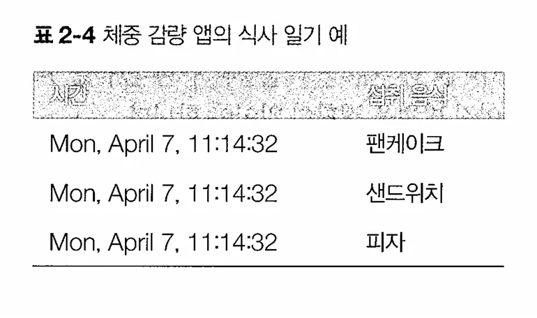 타임스탬프가 찍힌 이벤트 기록 (데이터베이스에서 타임스탬프를 확인할 수 있는 예시)