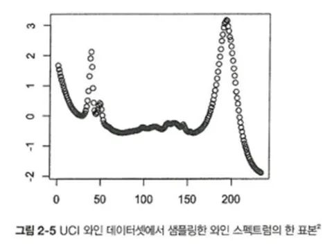 스펙트럼 (spectrum) : 빛의 파장 대 강도에 대한 그래프로 시계열과 상관 없어 보이지만,x축은 유의미한 방식으로 정렬 돼 있고 그 거리는 구체적 의미를 가져 시계열 분석에 적용할 수 있음 → 파장 등과 같이 x축의 순서로 얻는 추가정보는 시간적 요소는 없지만, 데이터가 일련의 정렬된 형태를 띠므로 시계열 아이디어를 적용할 수 있음