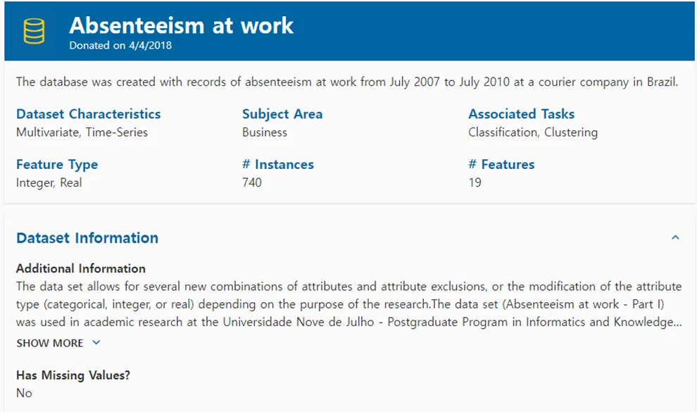 Iris 표본 data, 시간당 공기질의 표본, 아마존 파일 접근 로그 기록, 당뇨병 환자의 활동, 섭취 음식, 혈당 정보 기록 등