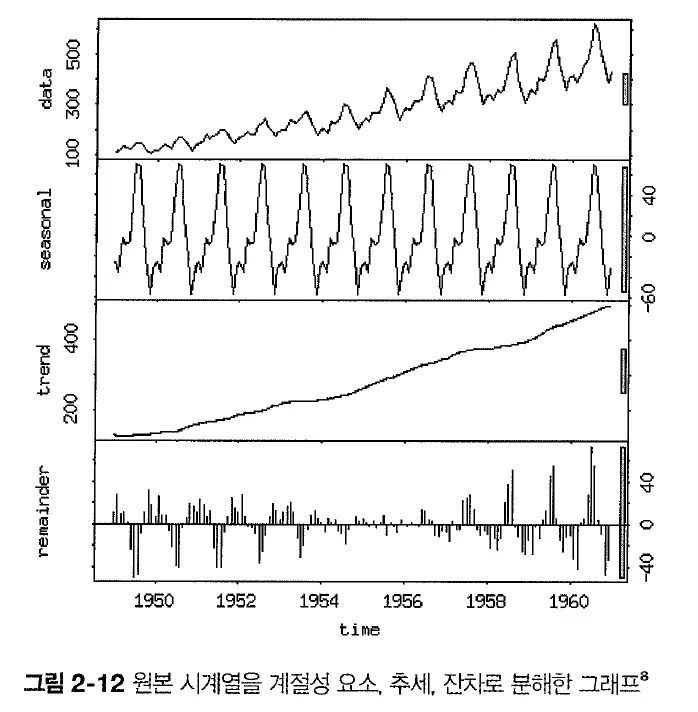 계절성(Seasonal), 추세(trend), 나머지(remainer, residual)로 분해 가능