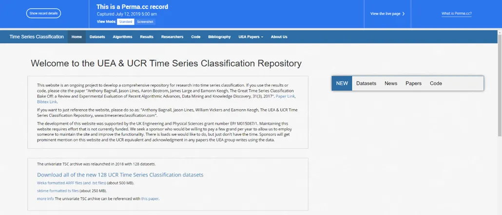 UEA(U of East Anglia) 및 UCR(U of Califonia) 시계열 분류 저장소