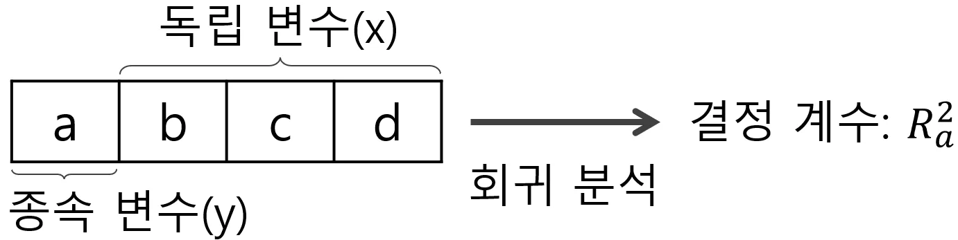 독립 변수 집합 가 주어질 때, 특정 변수 의 VIF 값은 변수 를 종속 변수로 하고, 나머지 변수들을 독립 변수로 해서 회귀 분석을 수행