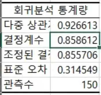 Sepal.Length 변수의 회귀분석 결과. VIF 계산에 필요한 결정계수를 포함한다.